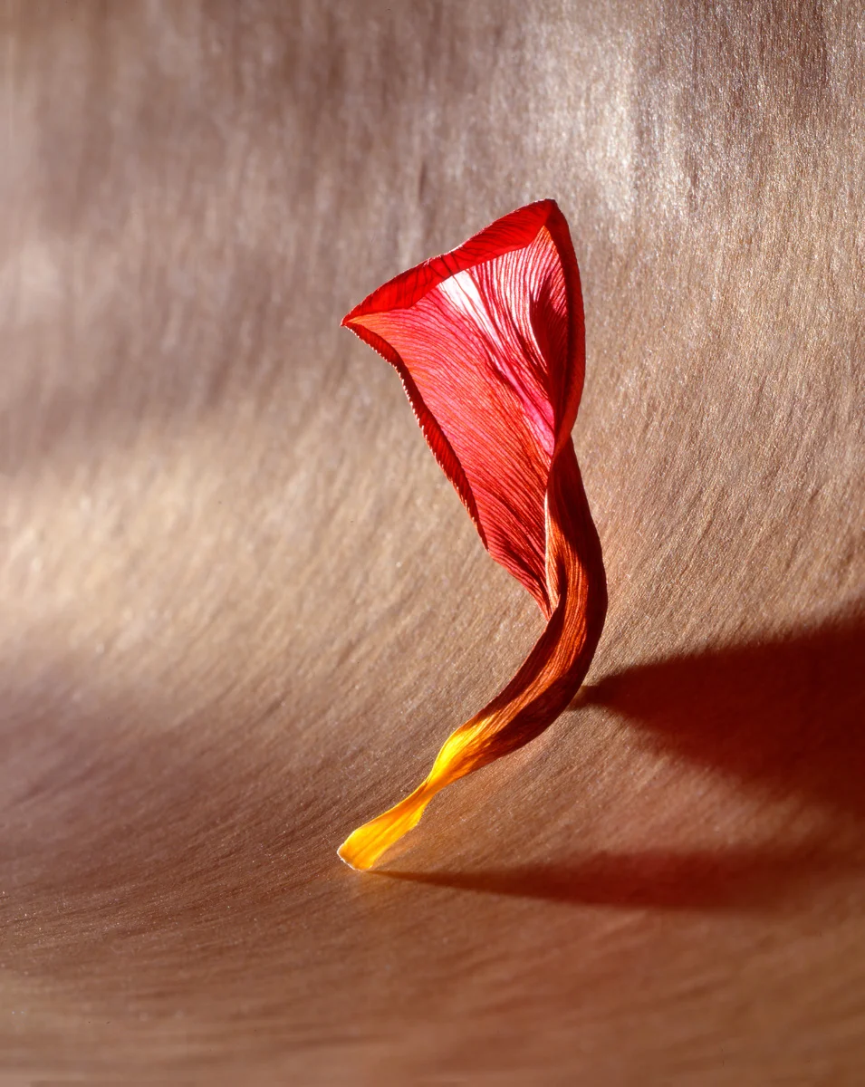 A collection of exquisitely dried tulip and iris petals, photographed on a velum background. As the petals dried they metamorphosed into fascinating and beautiful shapes making them ideal subject matter for a series of photographs.